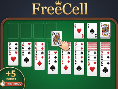 Classic FreeCell solitaire! Move all cards to the foundation piles (Ace to King, one suit per pile). Build tableau columns in descending order with alternating colors. Use free cells strategically!