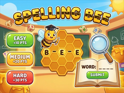 Test your spelling skills! Spell 10 words correctly. Choose from Easy, Medium, or Hard difficulty. Each difficulty level offers different point values!